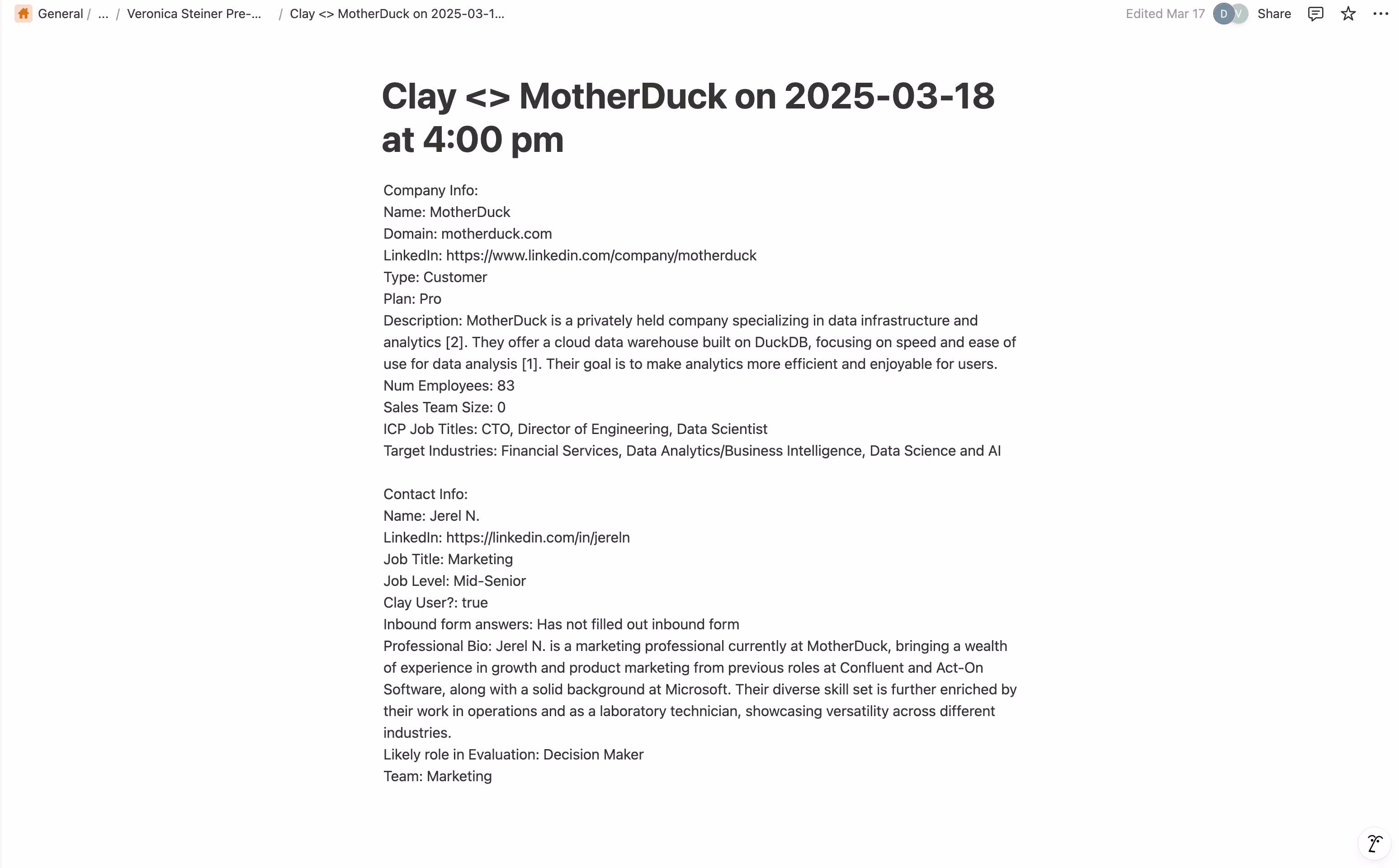Stop wasting time prepping notes for meetings. Let Clay do it for you!